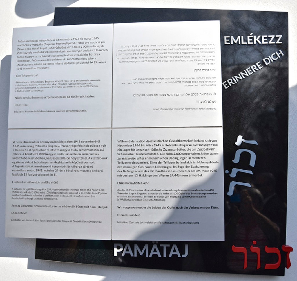 Ministri spravodlivosti z Maďarska, Rakúska a Slovenska v stredu (29. 3.) odhalili pamätnú tabuľu na jedinej zachovanej budove, ktorá si tieto zverstvá pamätá.
