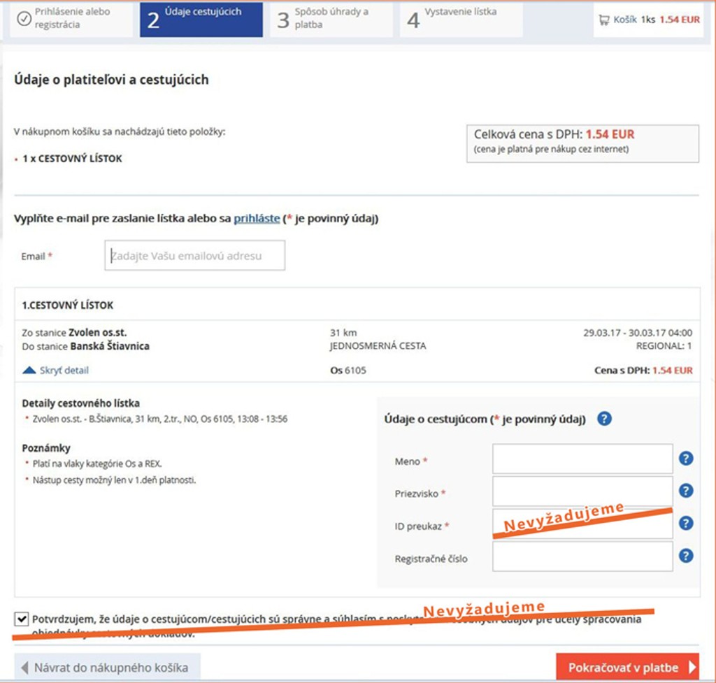 Bežnému nezaregistrovanému cestujúcemu stačí teraz napísať len meno, priezvisko a e-mailovú adresu. Číslo preukazu zadávajú len bezplatní cestujúci. Zjednodušenie pocítia najmä užívatelia, ktorí kupovali lístky pre svojich priateľov, rodinu či kolegov.
