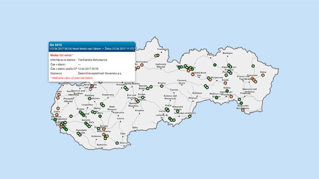 Aktuálne meškania vlakov si môžete pozrieť na mape železníc.