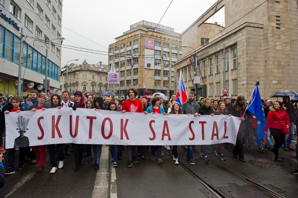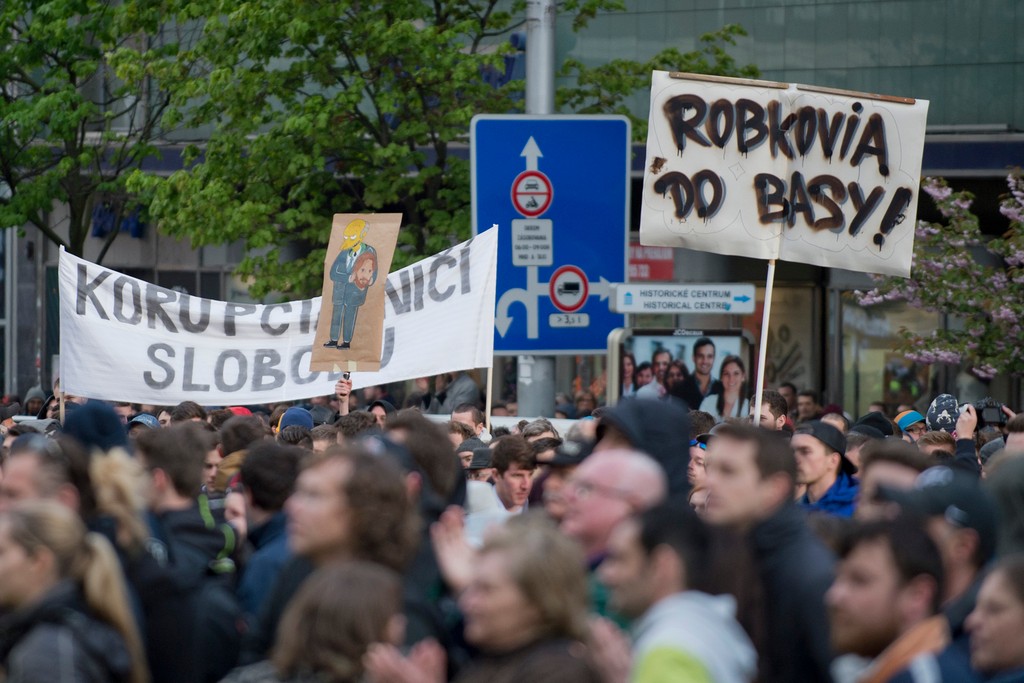 Centrom Bratislavy v utorok podvečer pochodovali tisíce ľudí, ktorým prekáža korupcia v našej krajine. Aj keď ide o vážnu tému, nad ich hlavami sa často týčili aj mimoriadne vtipné transparenty.