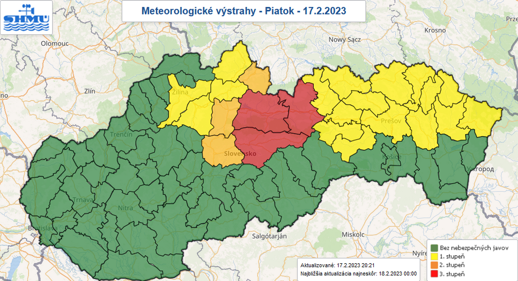 V Liptovskom Mikuláši, v Brezne a v Poprade sa môže v piatok večer a sobotu (18. 2.) ráno na horách vyskytnúť mohutná víchrica až orkán. Slovenský hydrometeorologický ústav (SHMÚ) vydal pre okresy výstrahu tretieho stupňa.