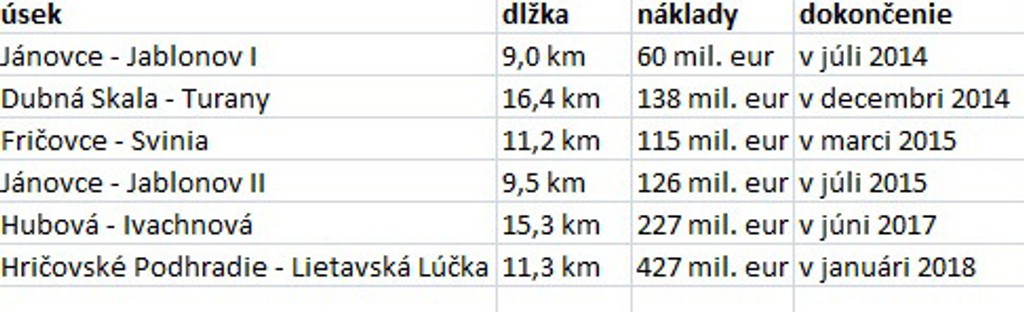 Na prvej časti úseku Jánovce - Jablonov sa vlani harmonogram prác plnil vraj len na 70 percent a v oblasti Fričovce – Svinia na 73 percent.
