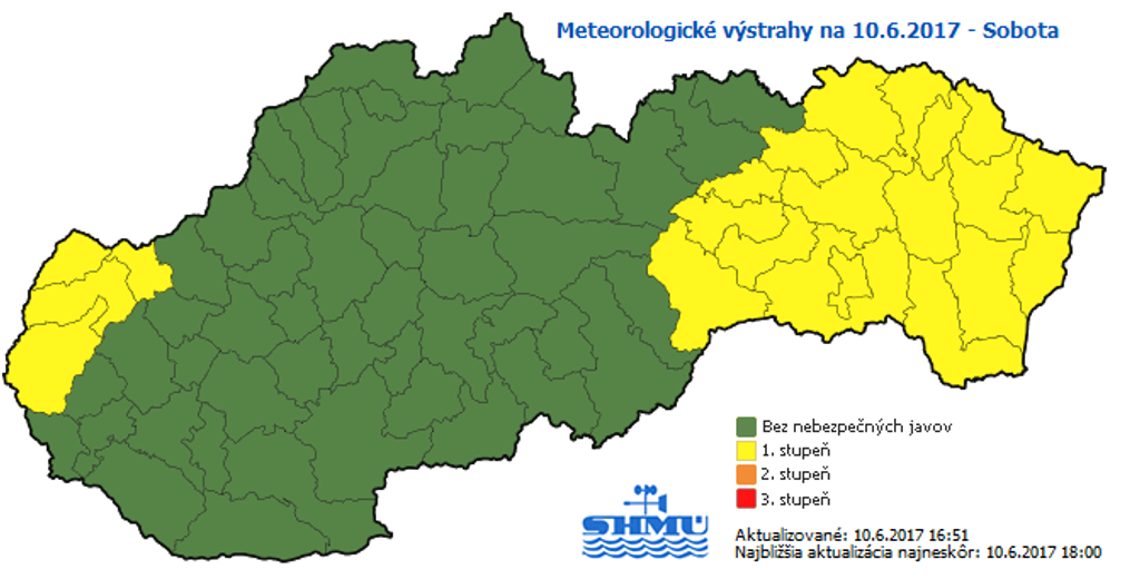 Hrozba búrok sa presunula na východ Slovenska. Prakticky na celom území východného Slovenska hrozia podľa aktualizovaných informácií Slovenského hydrometeorologického ústavu (SHMÚ) do 19.00 h búrky s krúpami.