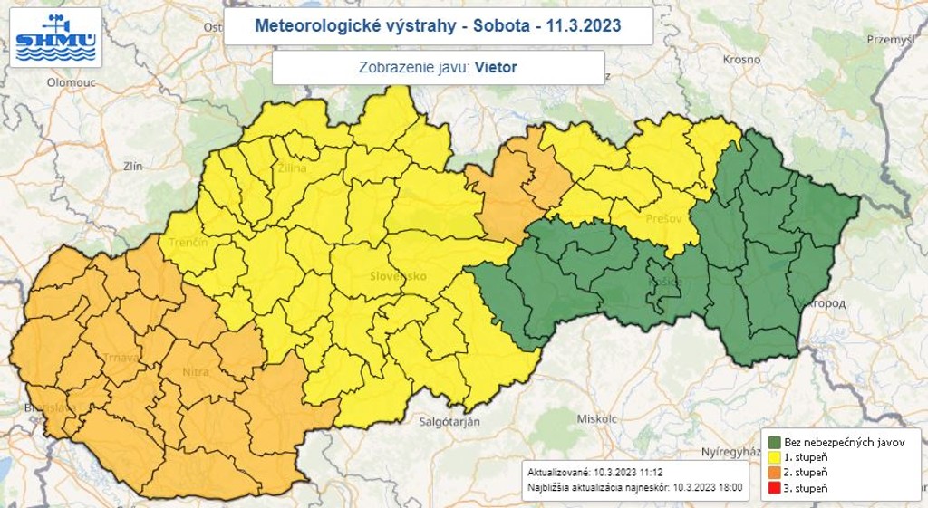 Slovenský hydrometeorologický ústav vydal pre západné a časť severného Slovenska výstrahy druhého stupňa.