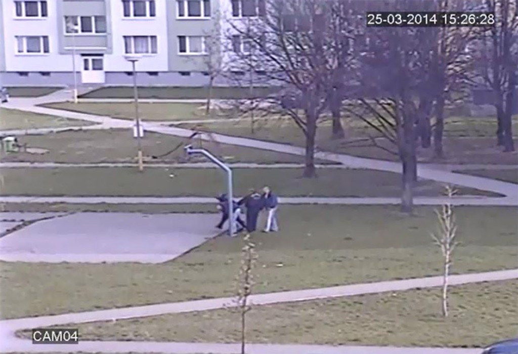 Jeden z páchateľov s boxerom a nožom v ruke zvalil poškodeného na zem a vyhrážal sa mu zabitím. Po tom, ako pribehli aj ďalší dvaja, sa tomuto páchateľovi podarilo utiecť a ukryť sa v blízkom vchode. Vzápätí nato si trojica vyhliadla ďalšiu obeť, na ktorú zaútočila. Muža udierala a kopala po celom tele. Vzala mu lieky a 40 eur. Po útoku bol poškodený jednorazovo ošetrený.
