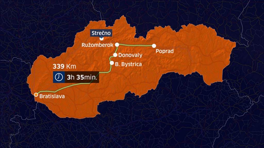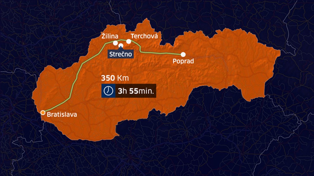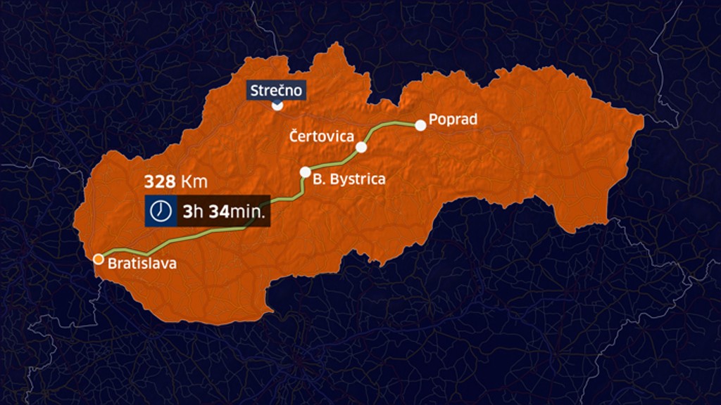 Ak sa na obchádzke cez Terchovú nedostaneme do kolóny, z Popradu do Bratislavy by sme mali severnou trasou zájsť za 3.45 h a prejsť 340 kilometrov.