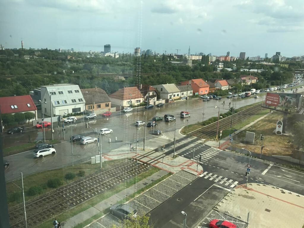 Najviac si to odniesla mestská časť Rača, kde zaplavilo chodníky aj cesty. Takto to vyzeralo na Račianskej ulici. "Do Rače sme poslali dve hasičské autá, niekde ešte odčerpávajú vodu," povedali pre TASR z Operačného strediska Krajského riaditeľstva Hasičského a záchranného zboru v Bratislave.