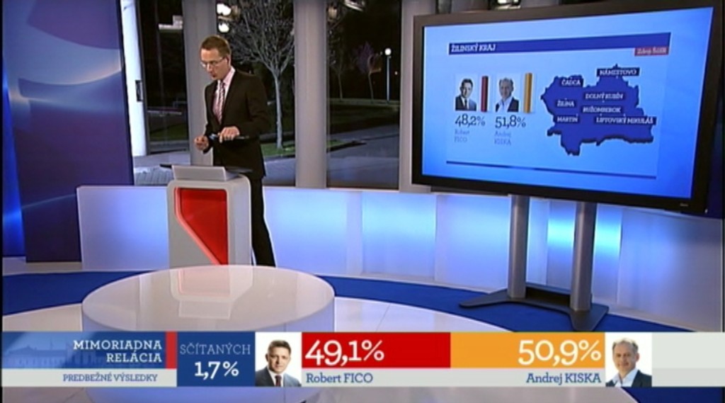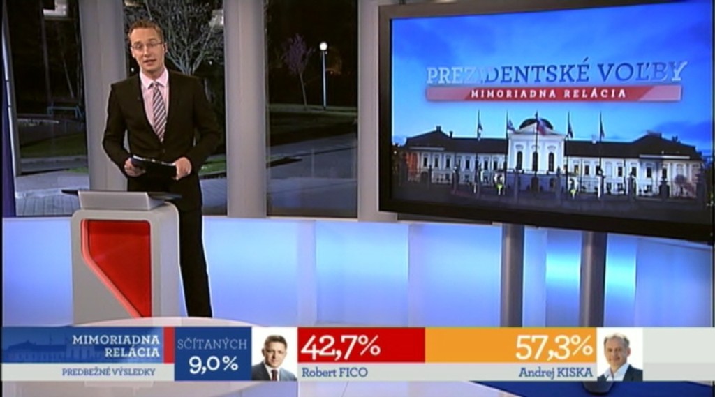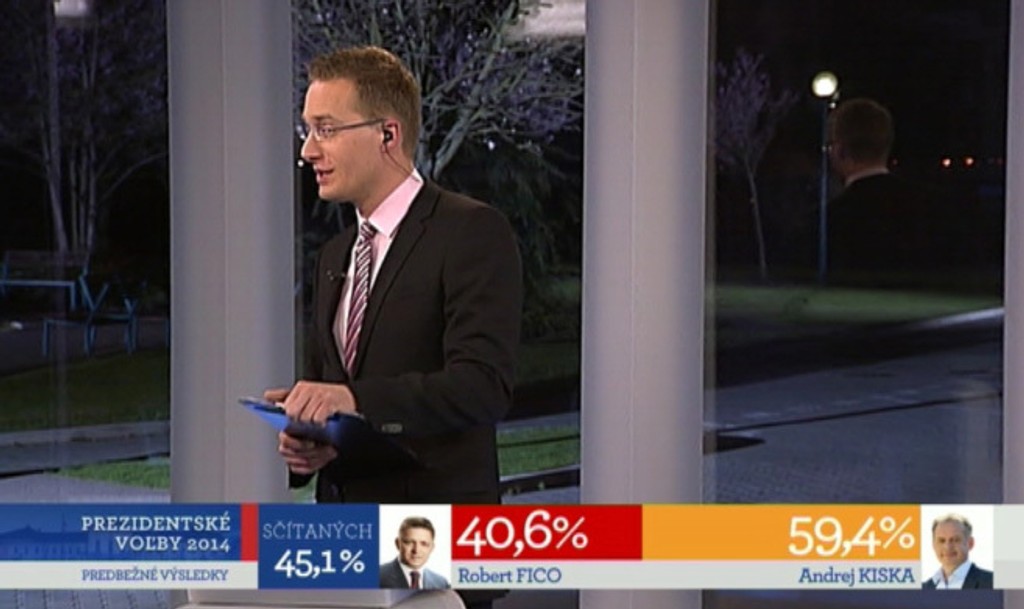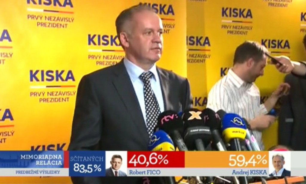 Víťaz prezidentských volieb Andrej Kiska mal viac hlasov než protikandidát Robert Fico už od prvého zverejnenia predbežných výsledkov približne o 22.40 h. Spočítaných bolo vtedy 1,7 percenta okrskov. Kiska mal 50,9 percenta.