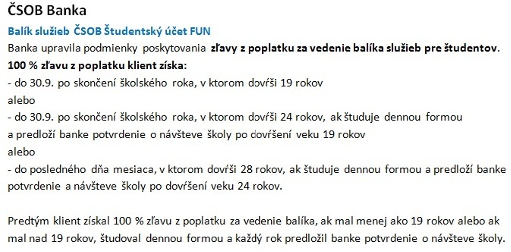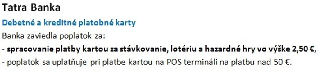 Položky, pri ktorých cena stúpne, sú využívané len minimálne, prípadne má klient alternatívu ako danú transakciu urobiť lacnejšie alebo bezplatne. Vklad hotovosti na vlastný účet je stále bez poplatkov.