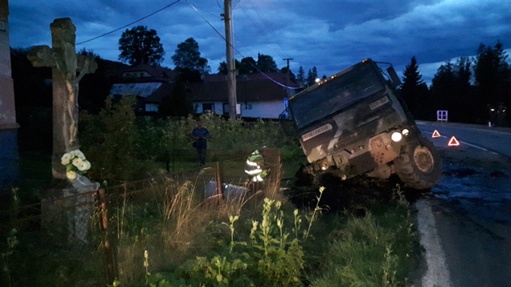 Turecký kamionista totiž obchádzal cyklistu a americký vojak v snahe zabrániť čelnej zrážke strhol volant a s autom skončil v priekope pri ceste. Po náraze do betónovej priepuste americkému vojenskému vozidlu odtrhlo nápravu s pravým predným kolesom. Dopravu na vyťaženom medzinárodnom cestnom ťahu na Poľsko regulovali vojenskí policajti, ktorí cez Slovensko kolónu sprevádzajú. Tureckého vodiča policajti po pár desiatkach kilometrov zastavili a zadržali. Zvyšná časť amerického vojenského konvoja čakala na parkovisku v susednej obci.