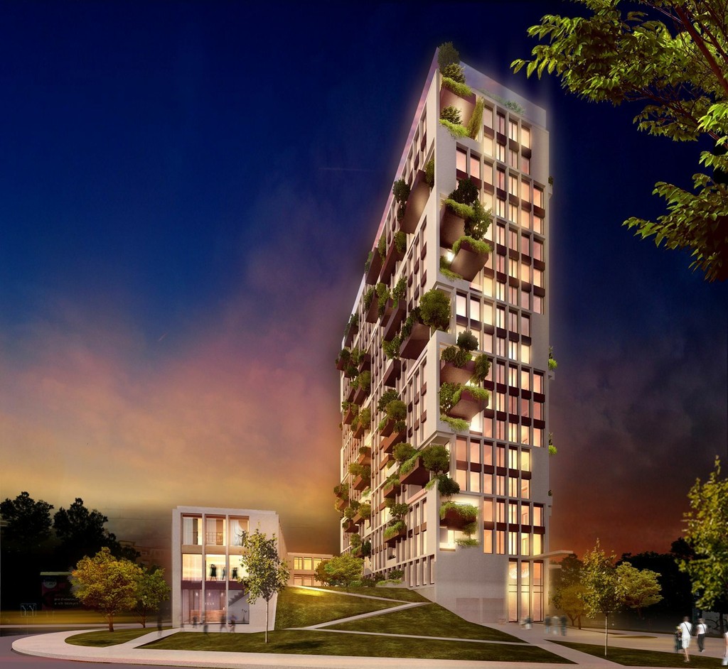 „Projekt sa inšpiroval talianskym projektom dvoch mrakodrapov Bosco Verticale (Vertikálny les) v Miláne. Do projektu sme dostali princíp vertikálnej zelene. Je to veľmi sympatická myšlienka. Projekt nemá pozemok veľkých rozmerov a súčasne sa nechcel priživovať na okolitých parkoch," uviedol architekt Kalin Cakov.
