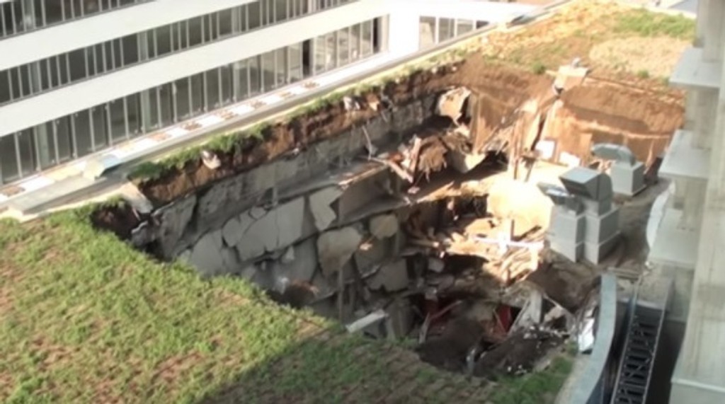 Doplnil, že v dôsledku toho došlo dňa 01.07.2012 v čase o 08.00 h ku zrúteniu poslednej stropnej dosky, na ktorej bola zemina v hrúbke do 1,1 metra. „Pád následne zapríčinil postupné zrútenie všetkých ostatných stropných dosiek pod touto výškovou úrovňou," doplnil súd.