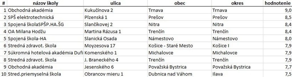 Najlepšie stredné odborné školy: