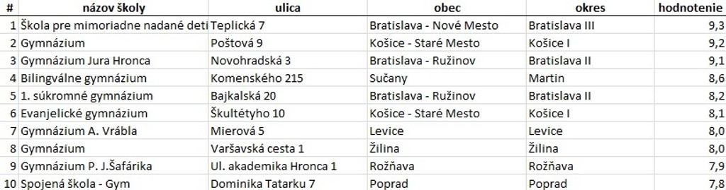 Najlepšie gymnáziá: