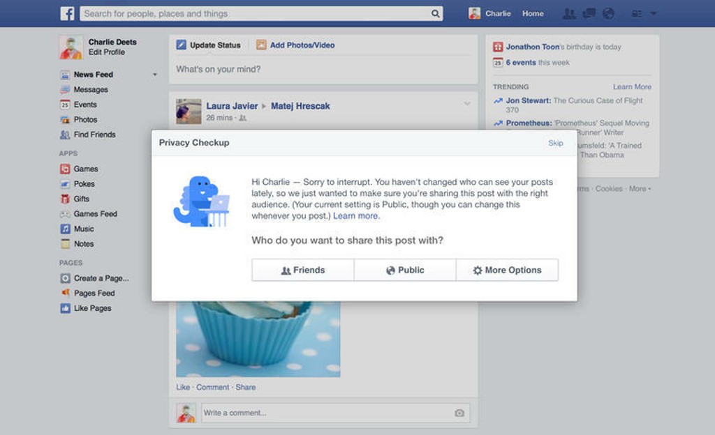 Najviditeľnejšia je tretia zmena, ide o tzv. „upozornenie na súkromie". Ide o pop-up (vyskakovacie) okno, ktoré upozorní užívateľa , že jeho príspevok je stále nastavený na možnosť Public (viditeľný pre všetkých).