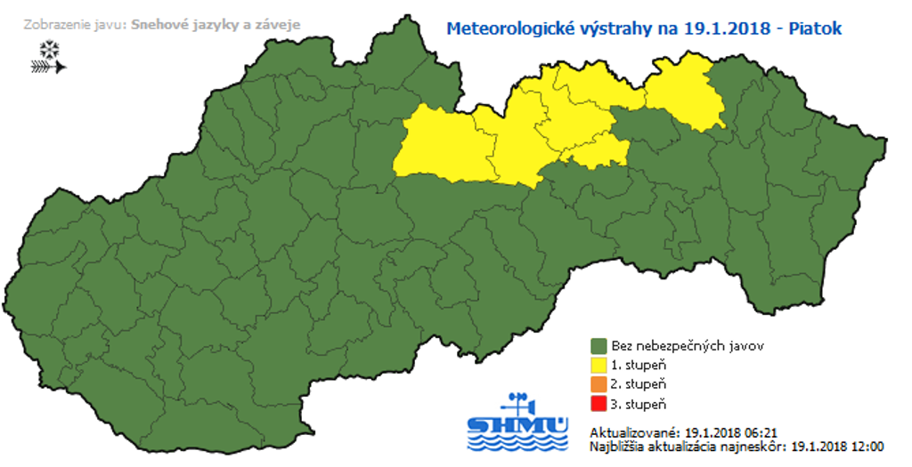 Slovenskí meteorológovia postupne sťahujú výstrahy. Momentálne varujú už len pred tvorbou snehových jazykov a závejov v severných okresoch stredného a východného Slovenska.