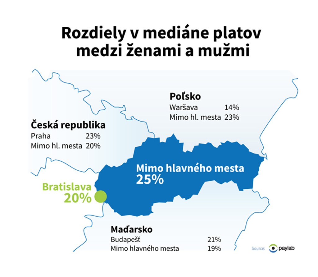 Menšie odchýlky v zárobkoch žien a mužov vidieť v hlavnom meste. Napriek tomu sú na Slovensku rozdiely pomerne výrazné. Zárobok ženy, ktorá nepracuje v Bratislave, je o 25 percent nižší ako plat muža.