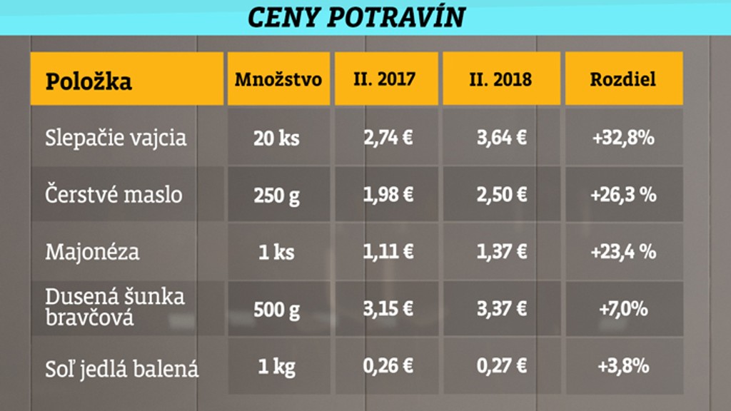 Vajíčka medziročne zdraželi o 49,5 percenta, maslo o 37 percent, ovocie o 18 percent. Vajíčka možno ešte trošku zlacnejú, ale stále sú drahšie ako pred rokom.