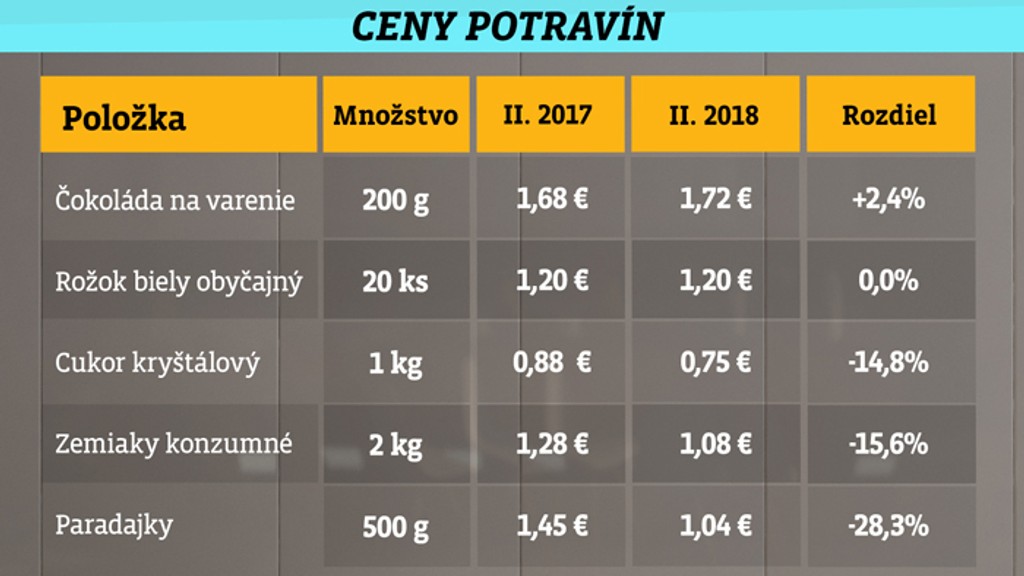 Výrazne klesla len cena cukru, ktorý padol takmer o desať percent. Za lacným cukrom je vlaňajšie zrušenie kvót, tie určovali, koľko cukru môžu jednotlivé krajiny Európskej únie vyrobiť.