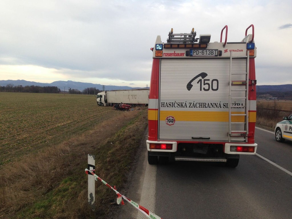 Zrážka osobného auta s kamiónom sa skončila tragicky. Nehoda sa stala na ceste za Prievidzou smerom na obec Nedožery-Brezany.