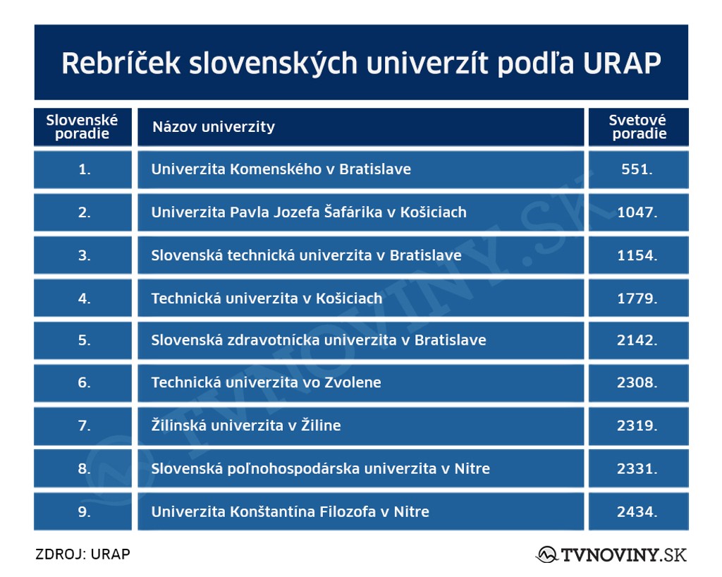 V rakingu sa umiestnili aj ďalšie slovenské univerzity: