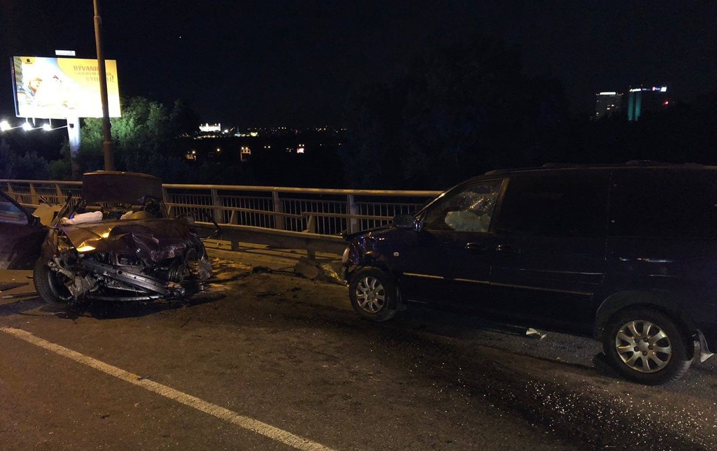 Z doposiaľ presne nezistených príčin 18-ročný vodič BMW narazil v nedeľu v noci do tlmiča nárazov a následne sa auto odrazilo do vozidla Kia Karnival.