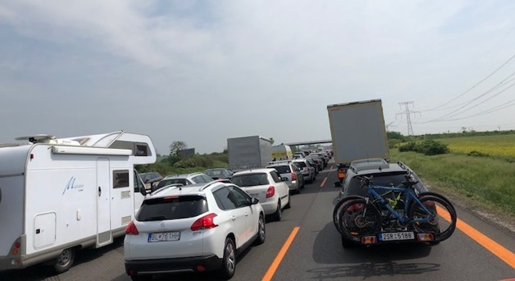 Totálny dopravný kolaps na D1. Z Bratislavy do Senca by ste dnes prešli rýchlejšie pešo než autom po diaľnici.