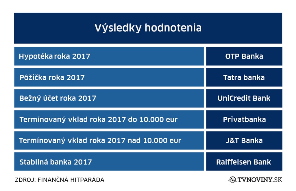Portál FinacnaHitparada.sk preto zisťoval, v ktorej banke sú jednotlivé produkty najvýhodnejšie. Hodnotenie zostavil na základe 250-tisícoch Slovákov, ktorí banky porovnávali.