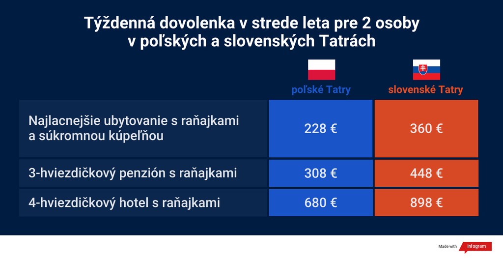 Ak pred relaxom na pláži uprednostňujete stúpanie do kopcov, je dosť možné, že ste si namiesto Chorvátska či Grécka ako letnú dovolenkovú destináciu zvolili Tatry. Slovenské Vysoké Tatry sú však už niekoľko rokov pre bežného Slováka pomerne drahé, v posledných mesiacoch zdraželi ešte viac. Našinci sa preto čoraz častejšie ubytovávajú v podstatne lacnejšom Poľsku.