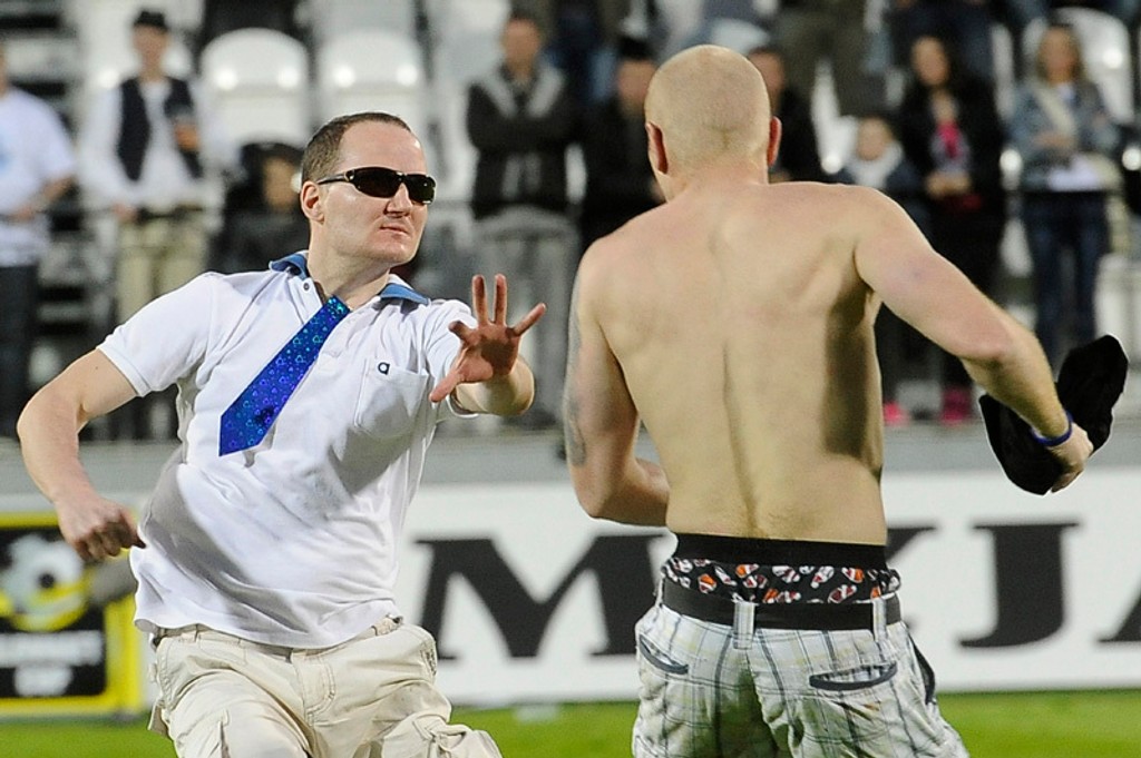 Asi 10 minút pred úvodným hvizdom preskočili niekoľkí fanúšikovia Slovana oplotenie na tribúne, vbehli na trávnik a chceli vyvolať roztržku s táborom Košičanov, no zabránil im v tom zásah usporiadateľov.
