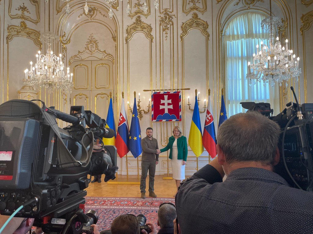 Hlavu vojnou zmietanej Ukrajiny oficiálne prijala prezidentka Zuzana Čaputová v Prezidentskom paláci. Po rokovaní mali spoločnú tlačovú konferenciu.