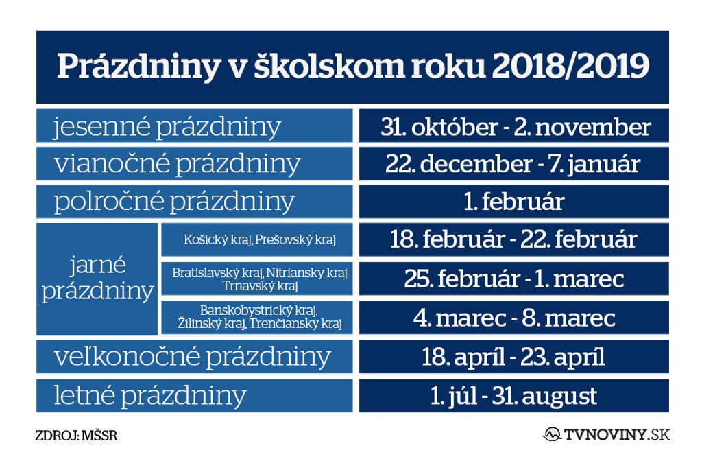 A keďže si niektorí rodičia plánujú dovolenky s deťmi v dostatočnom predstihu, pripravili sme pre váš prehľad prázdnin na budúci školský rok.