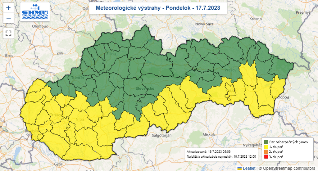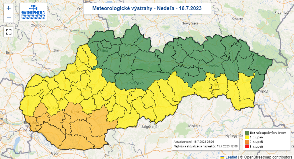 Prílev teplého vzduchu bude vrcholiť v nedeľu (16. 7.), kde pre Nitriansky a Trnavský kraj vydali meteorológovia druhý stupeň výstrahy pred horúčavami.