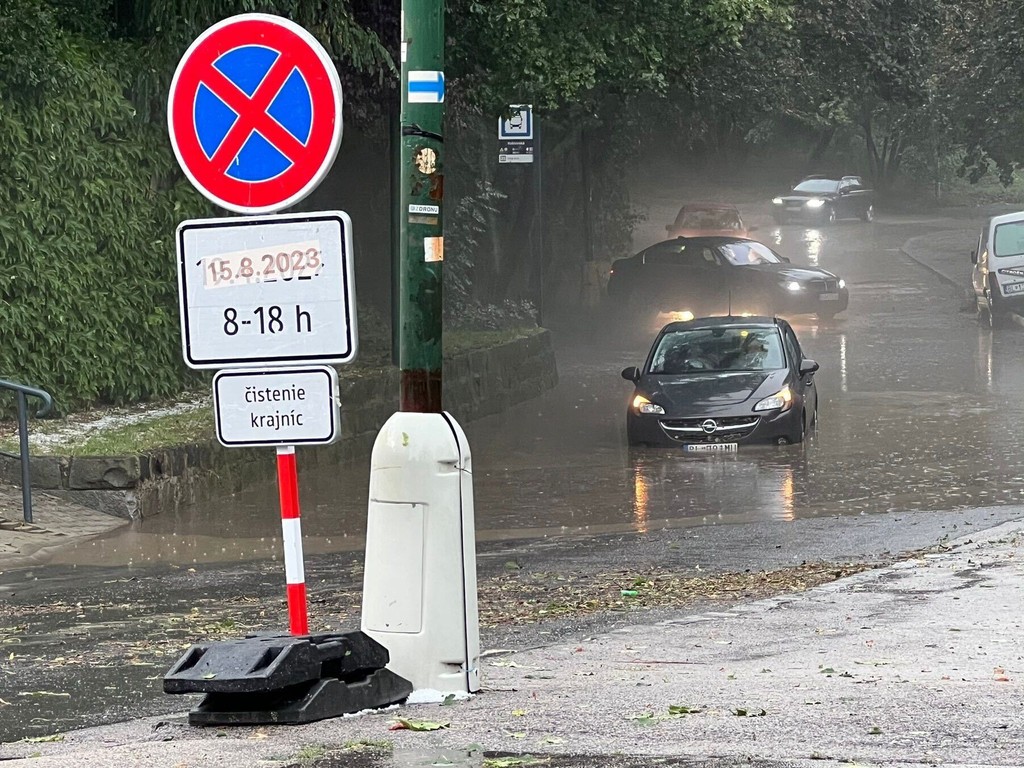 Búrka sa prehnala Trnavou a vyčíňa v Bratislave. Silná prietrž mračien zasiahla najmä mestskú časť Karlova Ves. Slnečné počasie sa rýchlo zmenilo na dážď a padali aj krúpy. Silný dážď komplikuje dopravu.