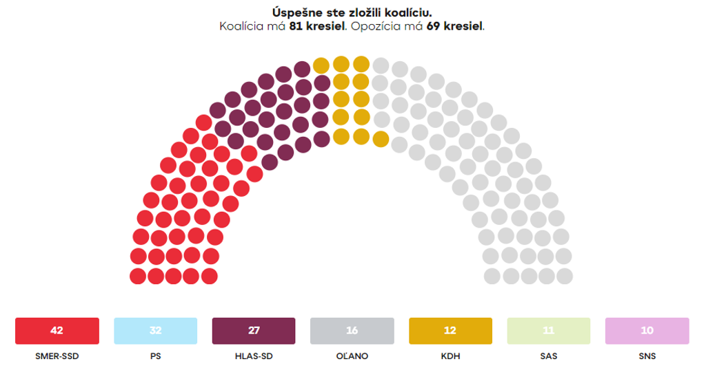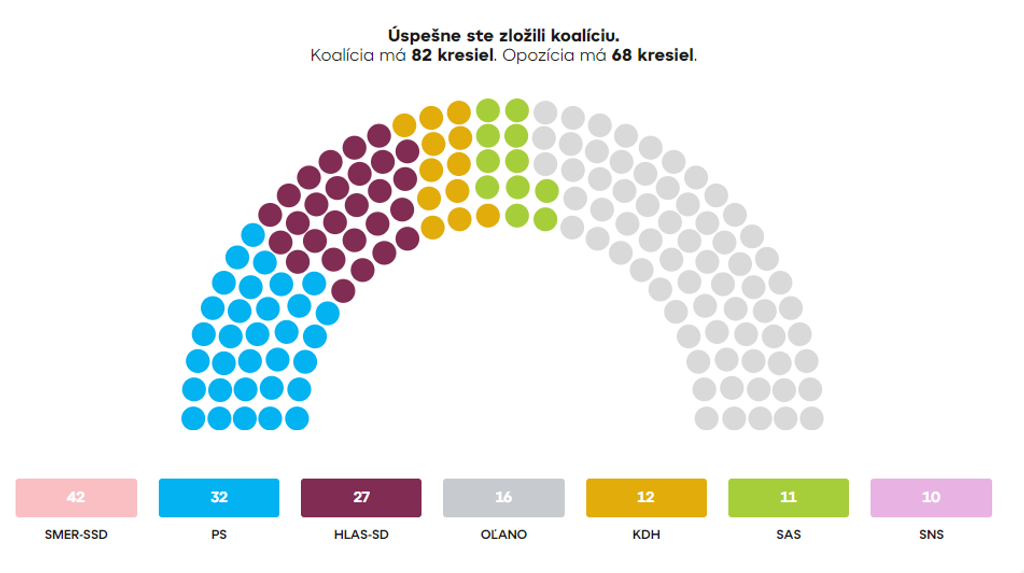 Slovensko si zvolilo nový parlament, z ktorého môžu vzniknúť len dva reálne povolebné scenáre a jeden teoretický. Prvým a pravdepodobnejším je koalícia v zložení Smer, Hlas a SNS. Takáto vláda by sa mohla opierať o 79 mandátov.