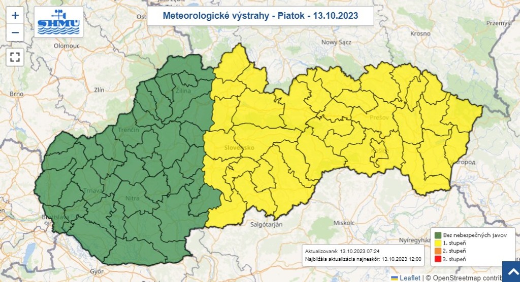 Vo vydanej výstrahe s platnosťou do 10.00 h o tom informuje Slovenský hydrometeorologický ústav (SHMÚ).