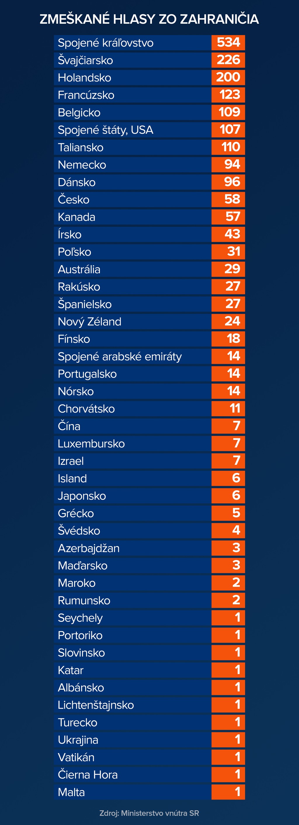 „Ku koncu minulého týždňa bolo týchto obálok vyše 2-tisíc. Najviac ich je z Británie, Švajčiarska, či Holandska. Mnohé poslali voliči v pondelok či utorok vo volebný týždeň a to bolo neskoro,“ uviedla riaditeľka odboru volieb ministerstva vnútra Eva Chmelová.