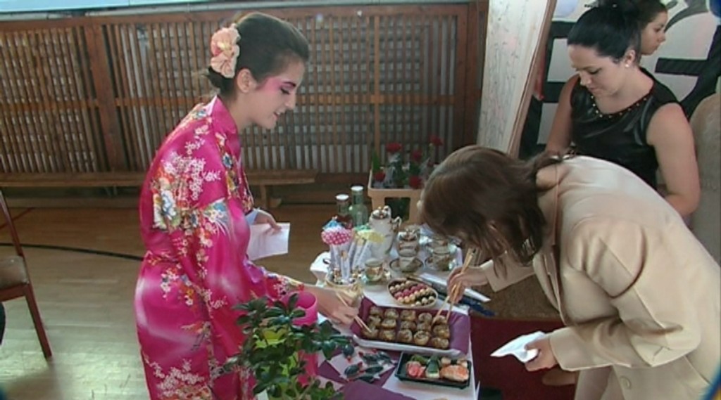 Jednotlivé krajiny ale predstavili aj typickým folklórom. Maturanti svoju výstavu nazvali „A od Prešova do sveta". Každý stánok predstavoval iný štát.