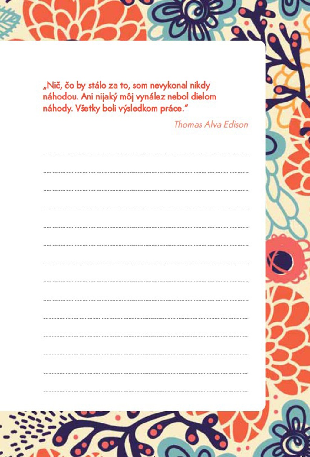 poslúži viackrát: môžete si doňho zapisovať nápady, myšlienky, ale aj úspechy a ciele, ktoré chcete dosiahnuť. To všetko v peknej grafickej úprave a s vyše 100 najkrajšími citátmi.