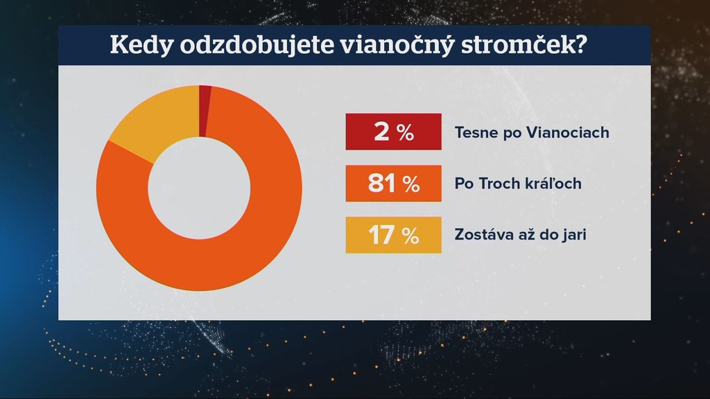 Množstvo debát sa spája aj s tým, kedy stromček odzdobiť. To, kedy sa presúvajú z obývačiek do pivníc a ku kontajnerom, naznačuje anketa, do ktorej sa zapojilo takmer 1700 Slovákov.