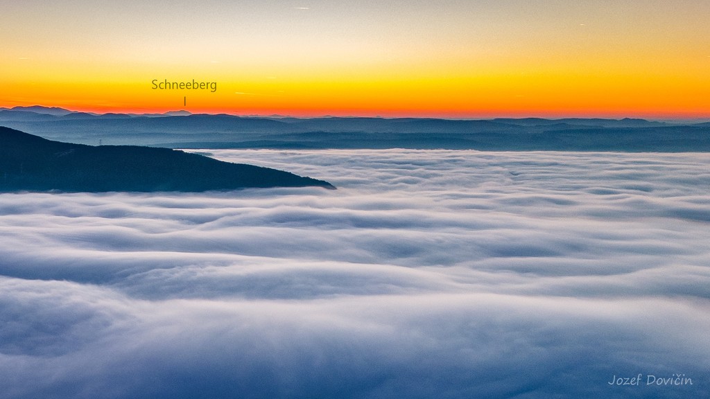 Fotografia vznikla vďaka priaznivým podmienkam 18.12 na 340 m. n. m. vysokom vrchu Hradisko pri obci Dolné Srnie. Záber odfotil dron a je na ňom vidieť vrch Schneeberg.