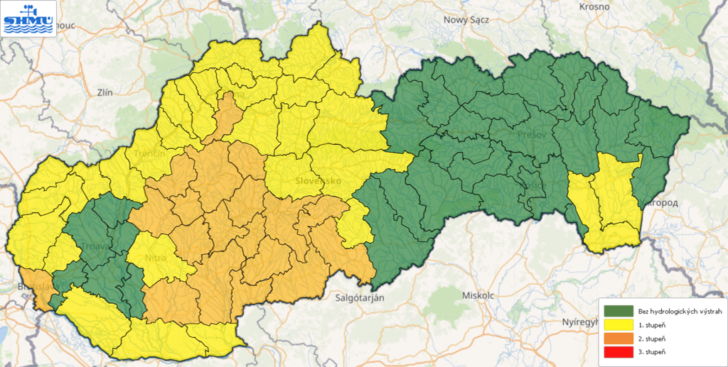 Slovenský hydrometeorologický ústav (SHMÚ) informoval, že hoci aktuálne na vodných tokoch prevláda ustálenosť až vzostup hladín, „výrazný vzostup je na tokoch v povodí Myjavy, hornej Nitry a Kysuce.“