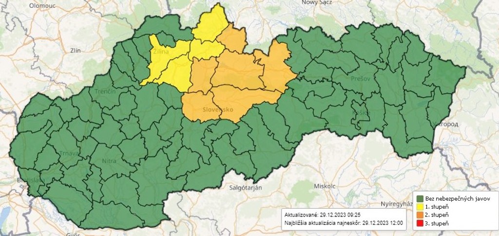 Ako informuje SHMÚ, v sobotu (30. 12.) môžeme očakávať zamračené počasie. „Ojedinele cez deň v severnej polovici miestami dážď alebo prehánky, vo vyšších polohách sneženie. Naďalej veľmi teplo,“ uviedli meteorológovia s tým, že teploty vystúpia až do 11 stupňov Celzia. Na horách si treba dať pozor na silný vietor, ústav vydal výstrahy prvého i druhého stupňa.