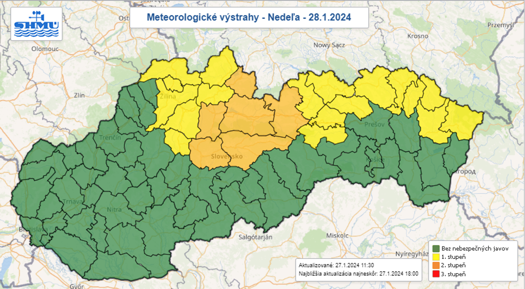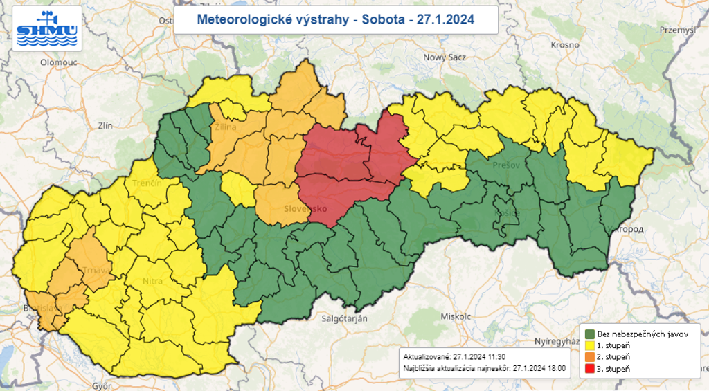 Postupne sa má situácia zlepšiť. Od 18. hodiny je Bratislavský kraj dokonca bez výstrahy, informuje Slovenský hydrometeorologický ústav (SHMÚ).