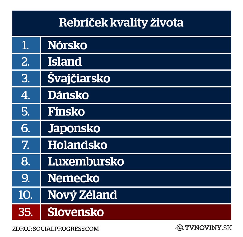 Spoločenský a ekonomický rozvoj či úroveň životného prostredia. To, aká je kvalita života v jednotlivých štátoch, zverejnil portál socialprogress.org.