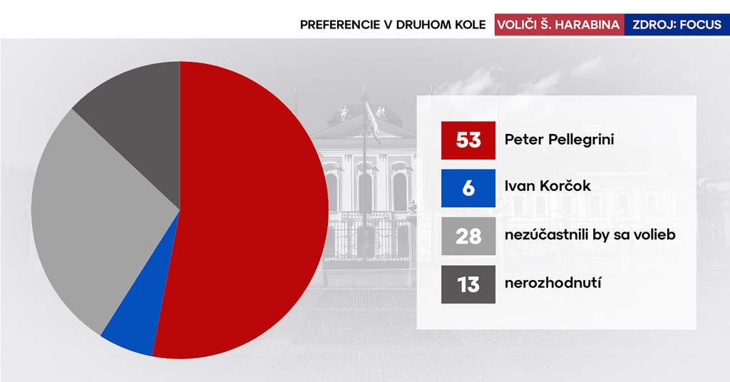 Medzi Harabinovými voličmi je však veľa takých, ktorí tvrdia, že voliť v druhom kole nepôjdu. Je ich až 28 percent. Ďalších 13 percent jeho voličov ešte nie je rozhodnutých.