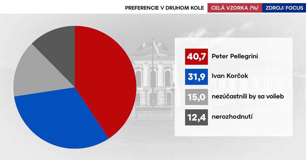 Z rozhodnutých voličov by Pellegriniho volilo 56 percent a Korčoka 44 percent. Avšak veľká časť občanov ešte nevie, či sa vôbec zúčastní druhého kola a koho by krúžkovali. Konkrétne je týchto voličov až 27,4 percenta.