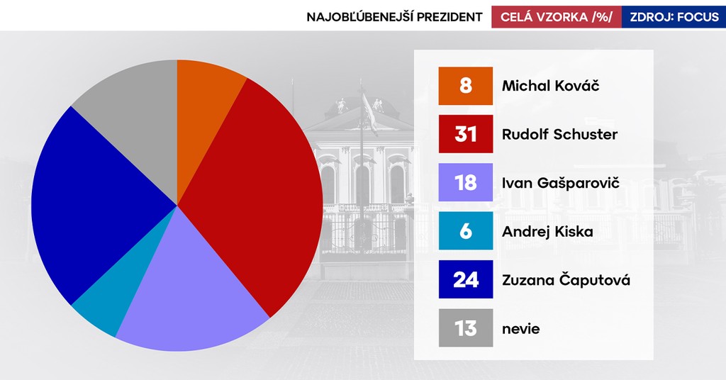Najpopulárnejší je Rudolf Schuster, ktorý bol prezidentom v rokoch 1999 až 2004. Nasleduje úradujúca prezidentka Zuzana Čaputová s 24 percentami.