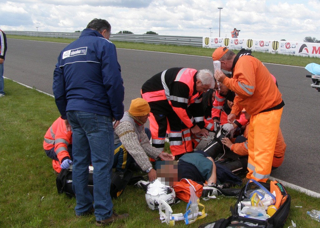 Polícia v súčasnosti vykonáva podľa krajskej policajnej hovorkyne v Trnave Márie Linkešovej vyšetrovanie udalosti, pri ktorej 37-ročný motocyklista spadol na okruhu z motorky. Keď mu personál poskytoval potrebnú pomoc, 40-ročný vodič motorky pravdepodobne nerešpektoval pokyny na dráhe a s motorkou narazil do skupiny štyroch osôb.