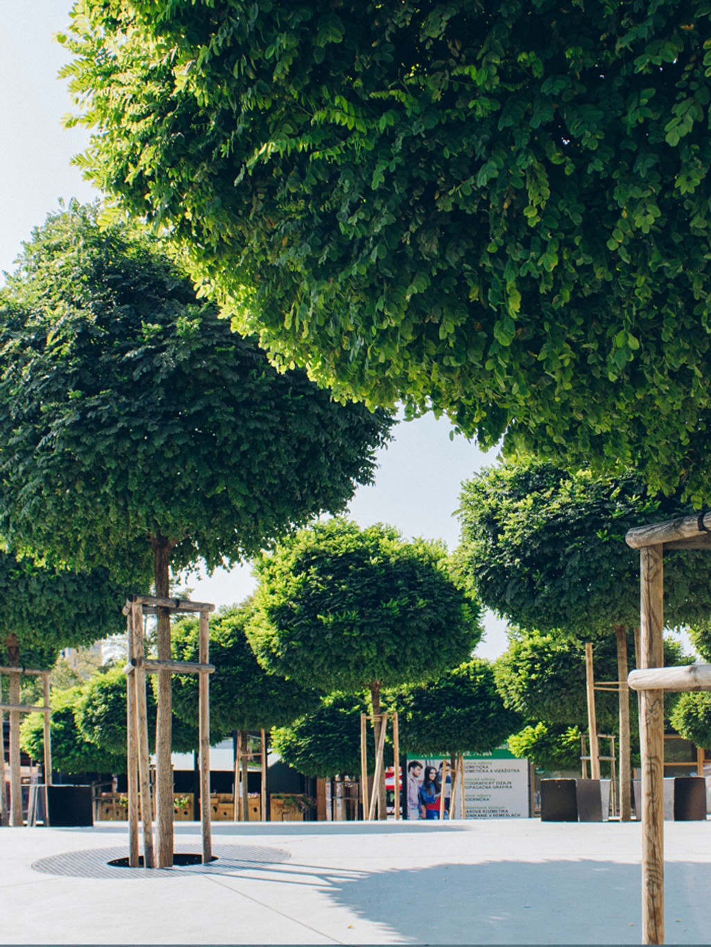 Základným princípom riešenia je prepojenie rôznych výškových úrovní prostredníctvom vloženého „koberca", ktorý v sebe integruje komunikačné, zhromažďovacie plochy a plochy určené na oddych.